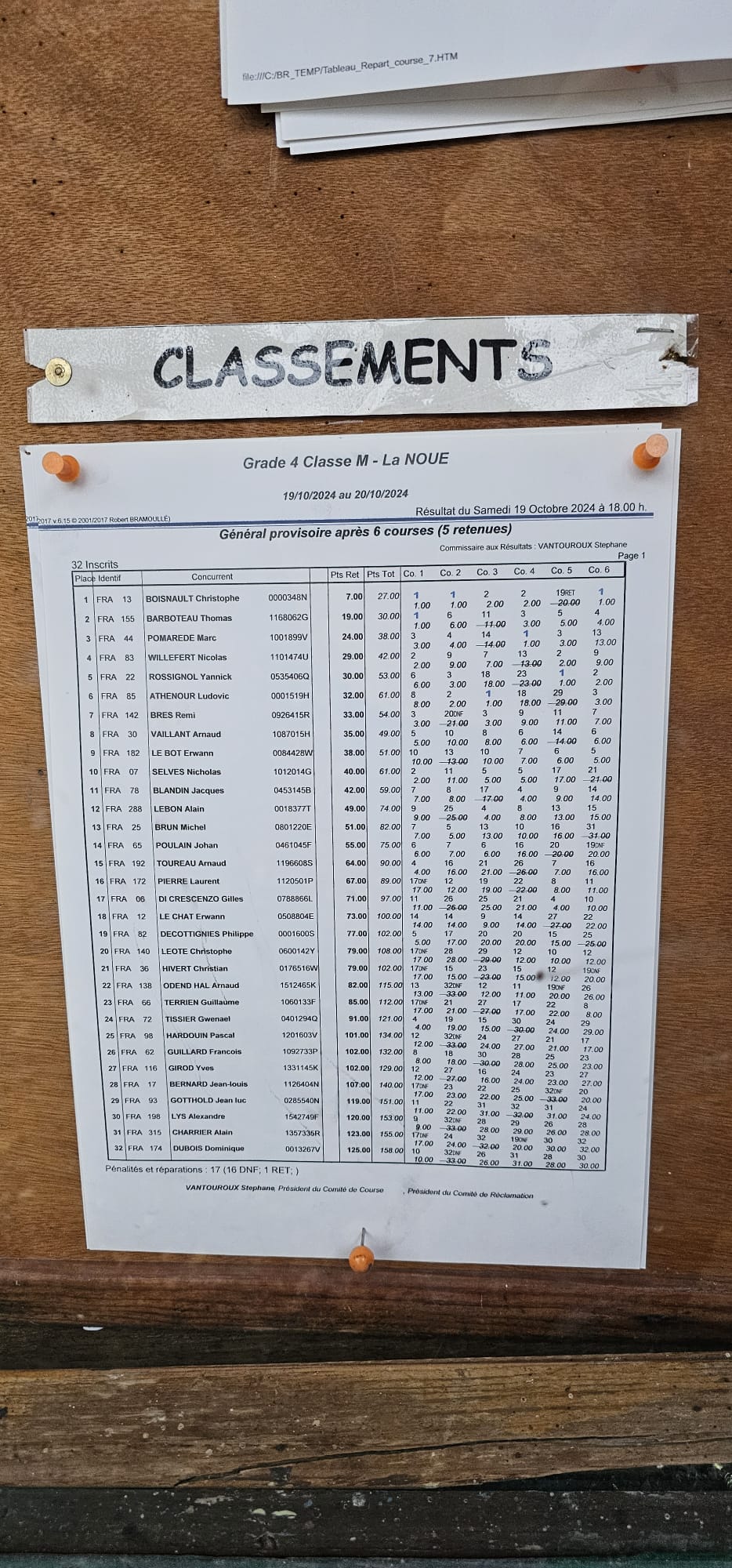 Merci à Nicolas, pour l'affichage du classement provisoire.