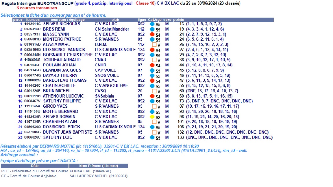 4 BAYARD Thierry RUBIS 0500774Q SNOS VOILE FRA 14 Adhérent Confirmée