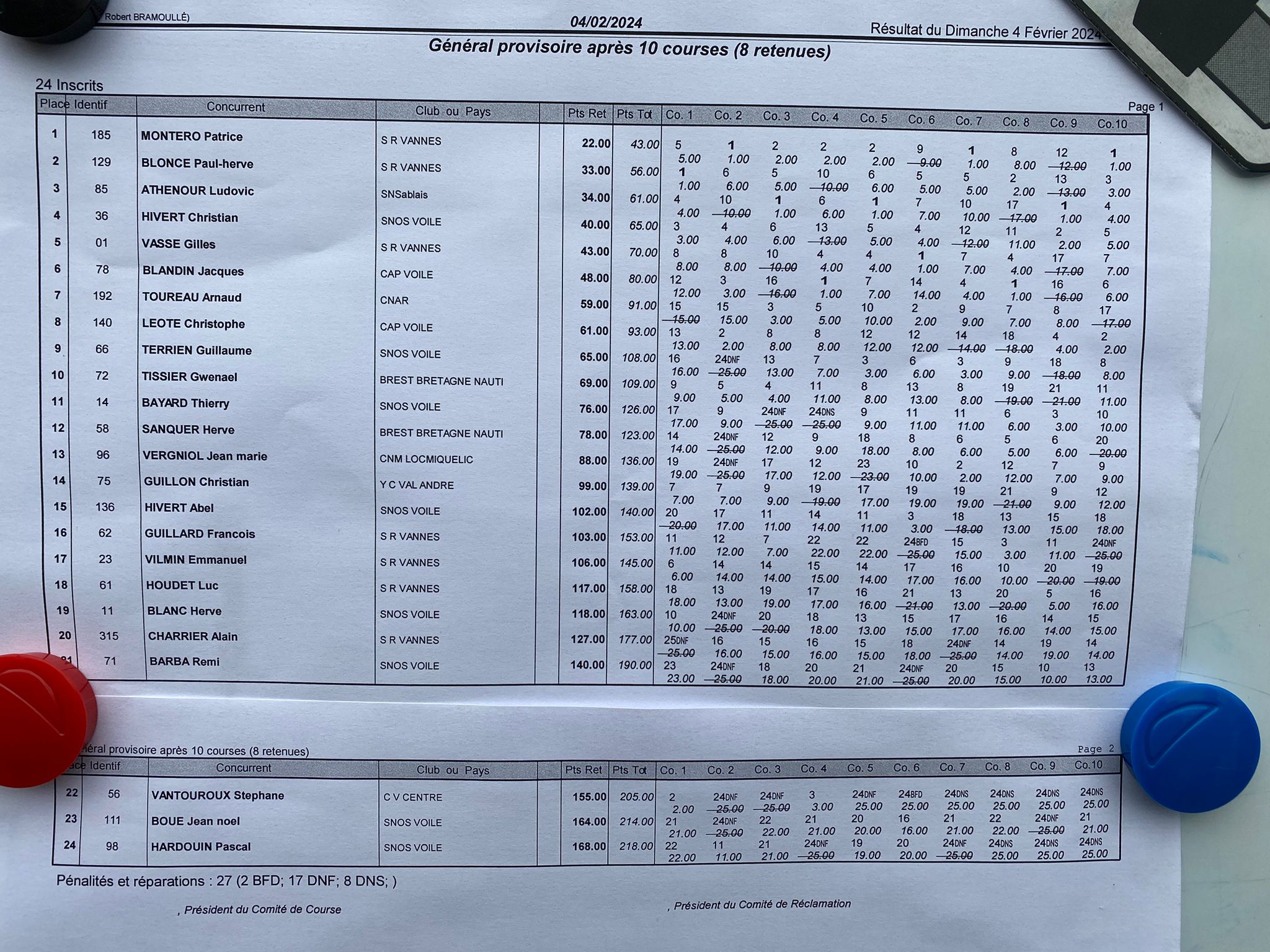 Avec les conditions météo d'hier, tenter la flotte unique à 24 s'est finalement révélé la bonne option avec 10 manches courues. Comme quoi !!!!!