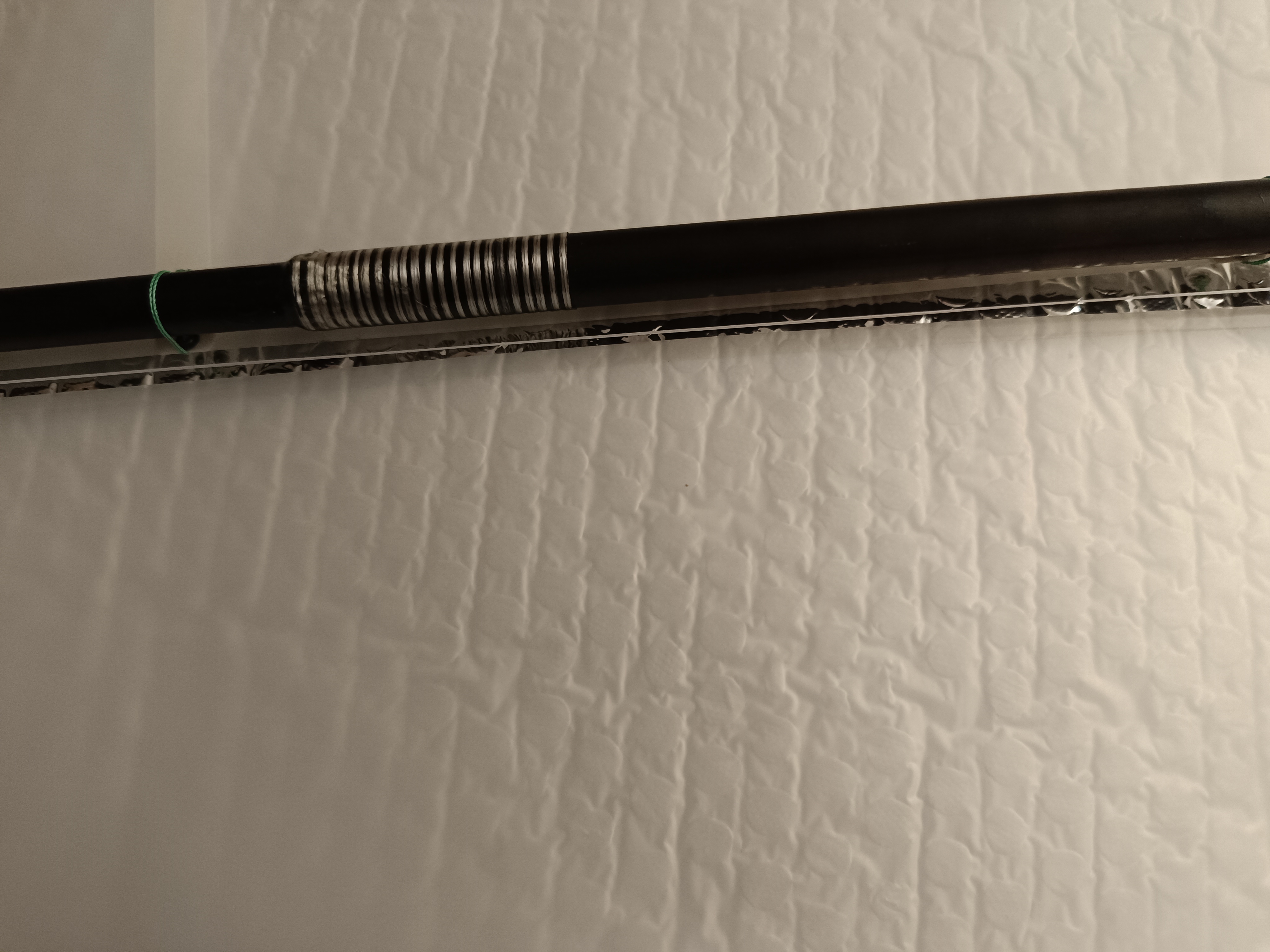 Dans la partie basse du tube de 14 mm, on le renforce sur 20 cms environ avec un tube de 12 mm que l'on insère et colle à l'epoxy à l'intérieur du premier tube.