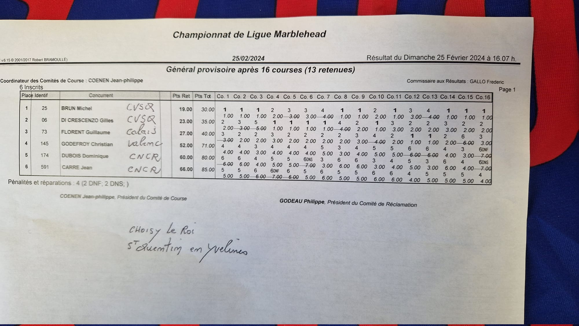 A Valenciennes, c'est finalement Michel BRUN, notre président qui enlève la régate devant Gilles dit Quinquin et Guillaume FLORENT.