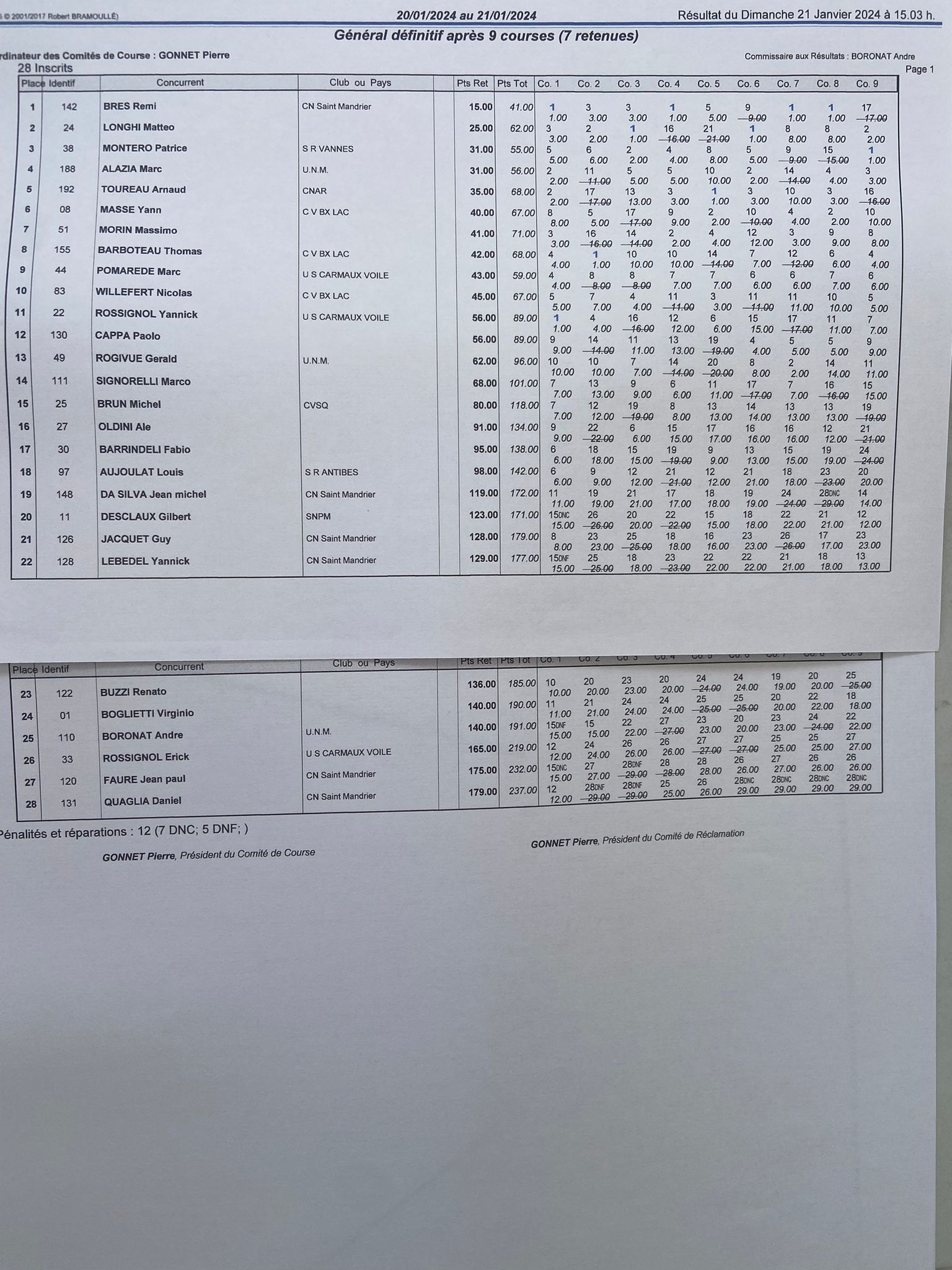 | 27 | Yannick | ROSSIGNOL | 0535406Q |