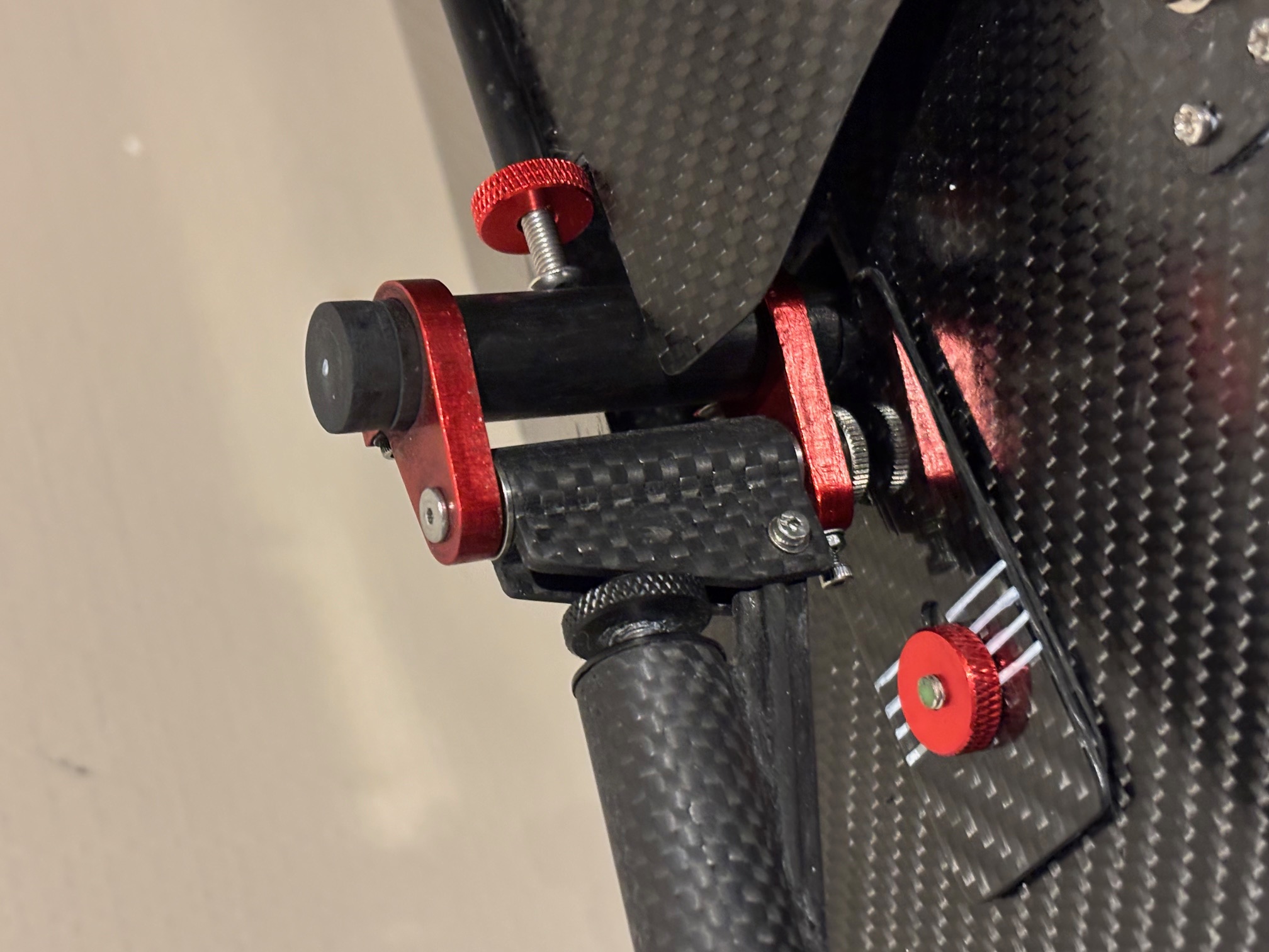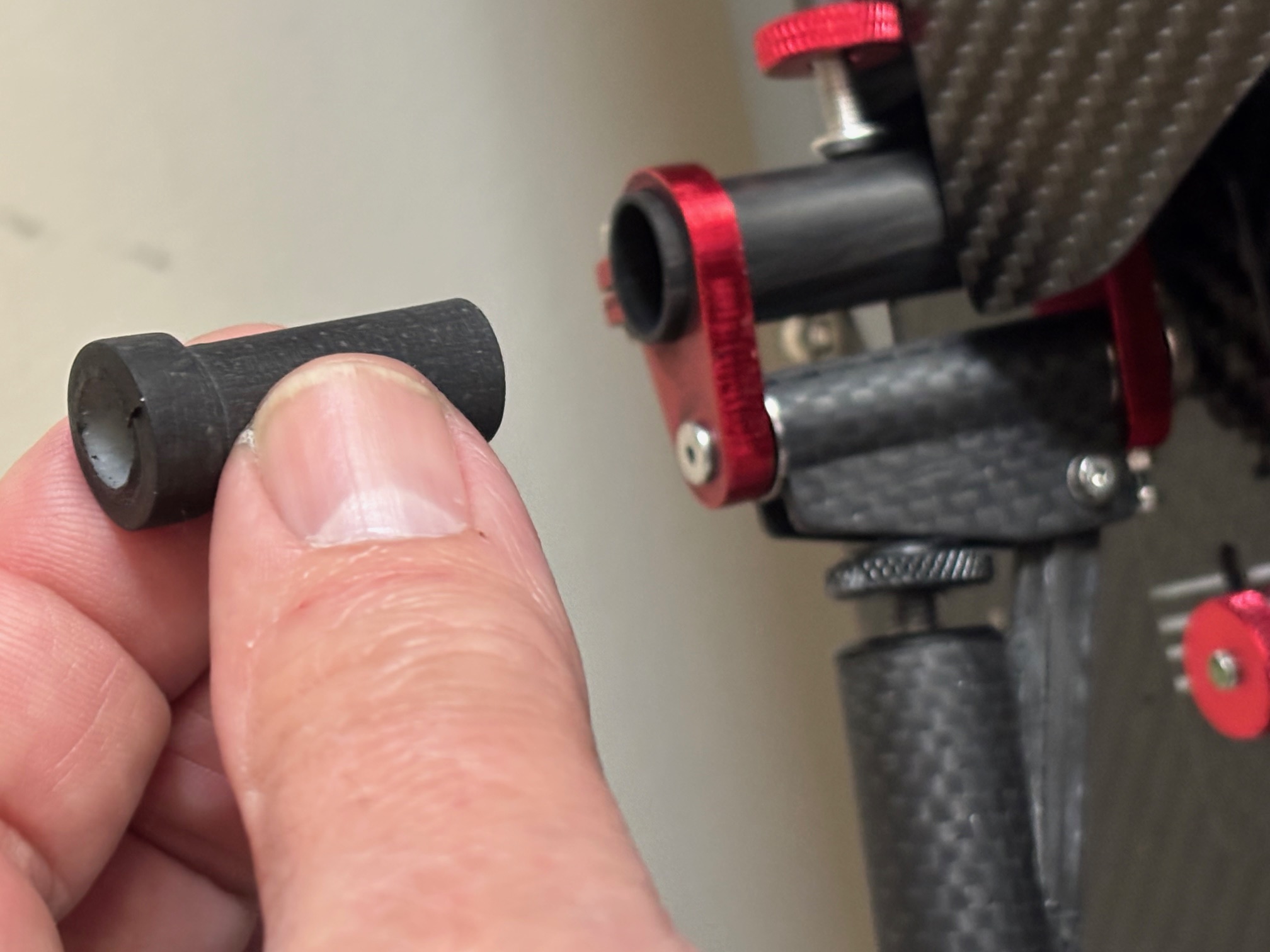 Une pièce en carbone monolitique usinée et recevant le roulement à billes du gréement tournant vient s'insérer dans le tube 14/12 du pied de mat, cf image